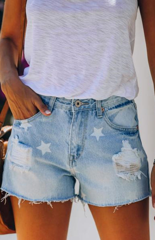 Women's Denim Shorts Pentagram Print Ripped Frayed Shorts