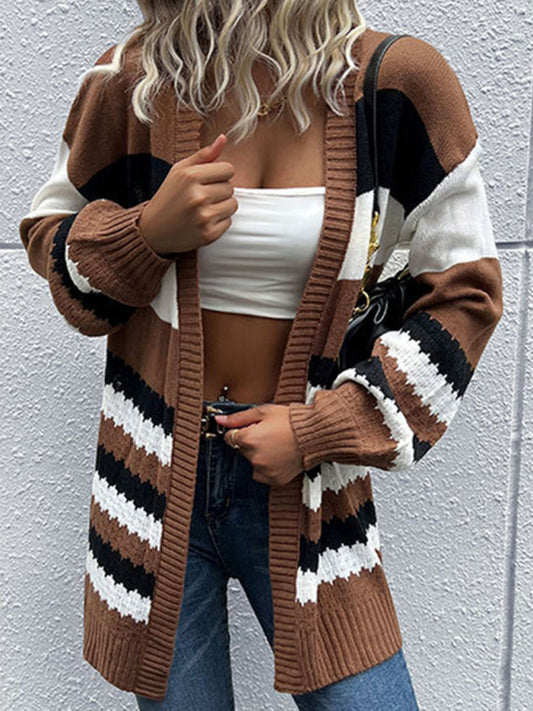 Women's Fashion Long Sleeve Colorblock Cardigan Sweater