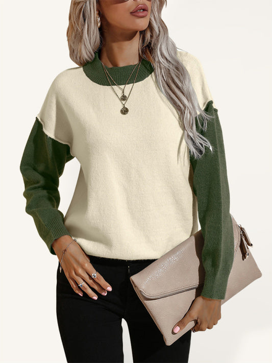Women's Casual Fashion Long Sleeve Colorblock Sweater