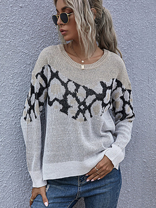 Casual Drop Shoulder Top Fashion Long Sleeve Leopard Sweater