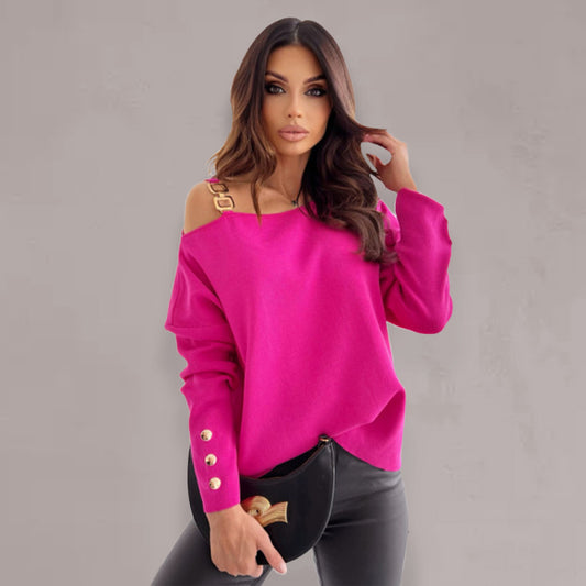 New Fashion Sexy Chain Button Decoration Long Sleeve Top Women