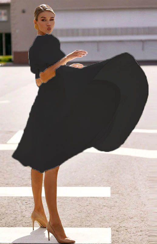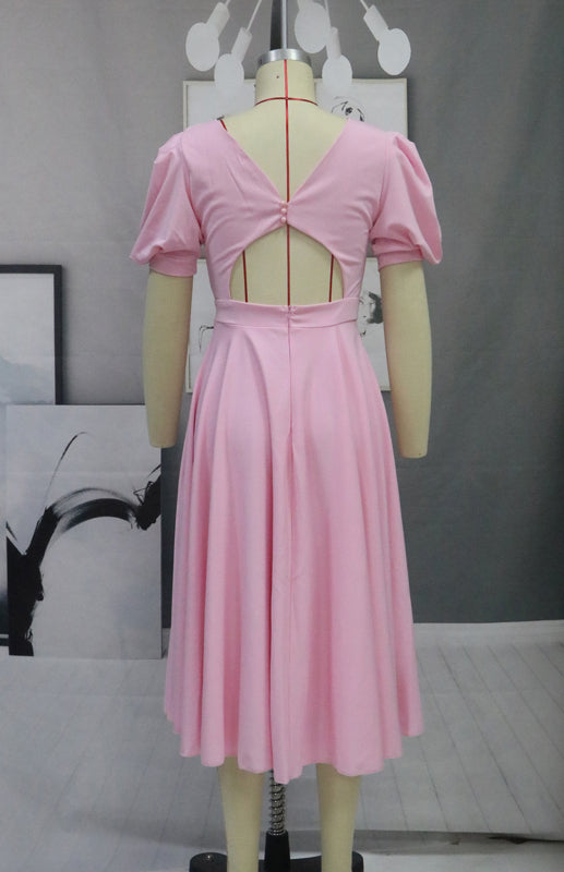 Fashion Solid Color Slim Fit Sexy Big Swing Dress