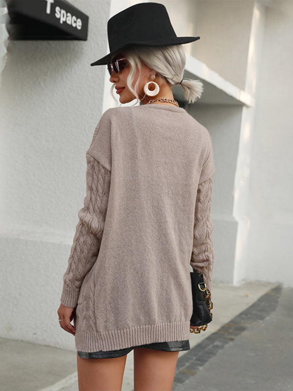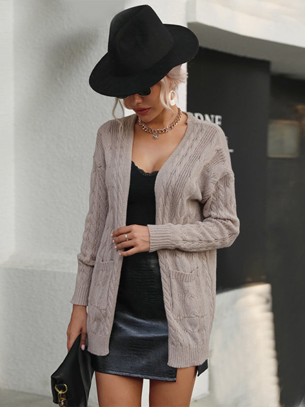 Ladies Twist Long Sleeve Solid Color Sweater Cardigan Jacket
