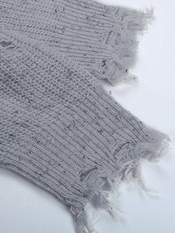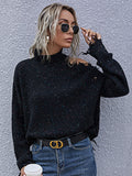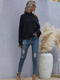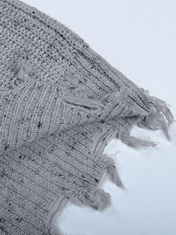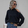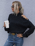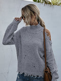 Loose off shoulder hole long sleeve high neck autumn knitted sweater for women
