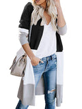 New contrast color long rainbow patchwork striped cardigan sweater jacket
