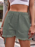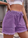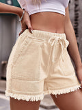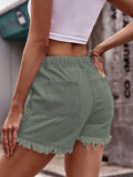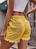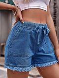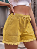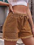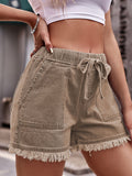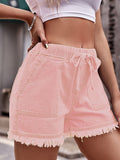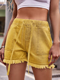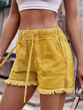 New style elastic waist drawstring casual high waist raw edge denim shorts for women