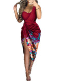 Pure color sexy sequin slit long skirt shirred one-shoulder evening dress