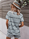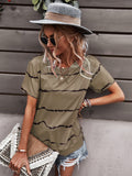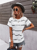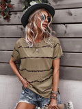 Round Neck T-Shirt Positioning Flower Short Sleeve Ladies