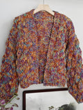 Stylish Casual Rainbow Knit Lantern Sleeve Knit Cardigan