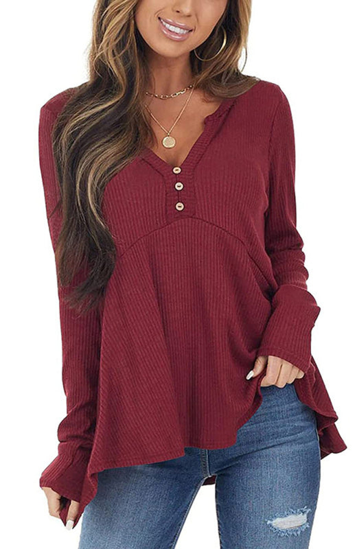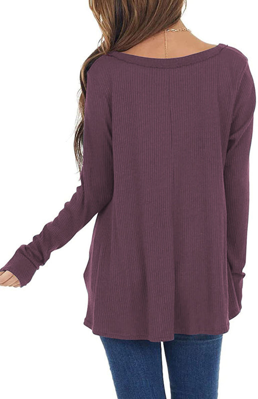 V-Neck Long-Sleeved Loose Bottoming Shirt