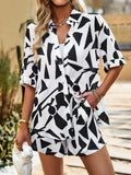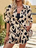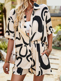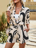 Women's Casual Fashion Abstract Irregular Printing Short Sleeve Shorts Two-Piece Set