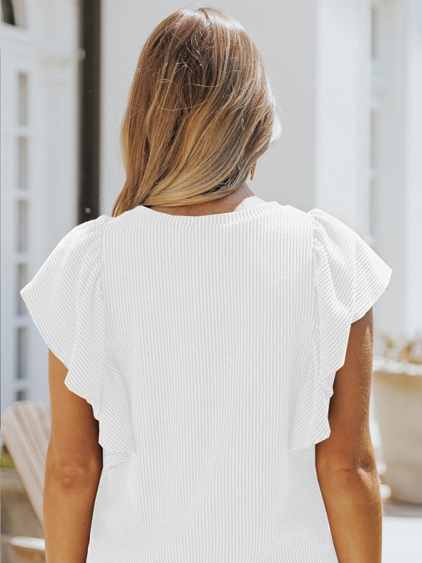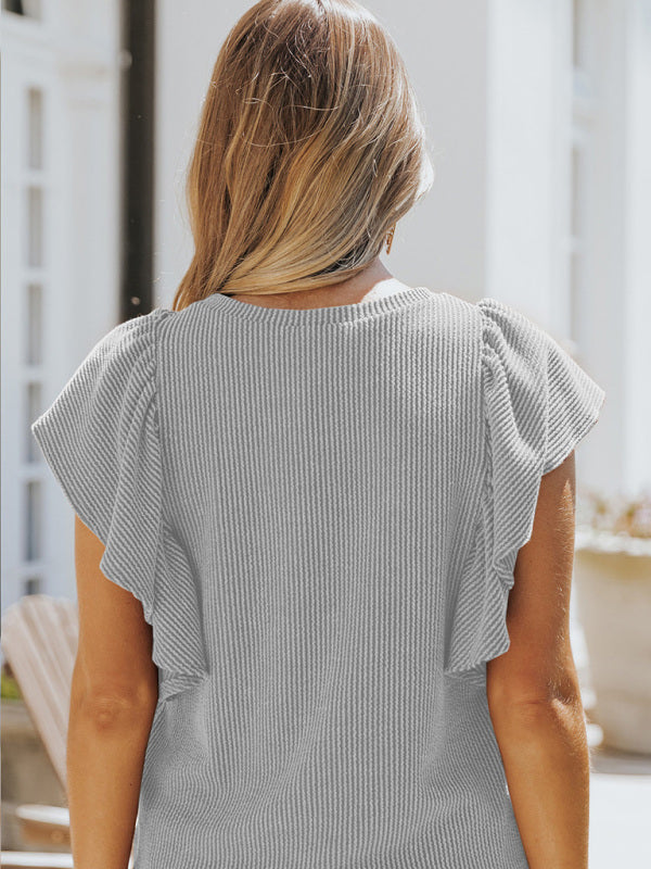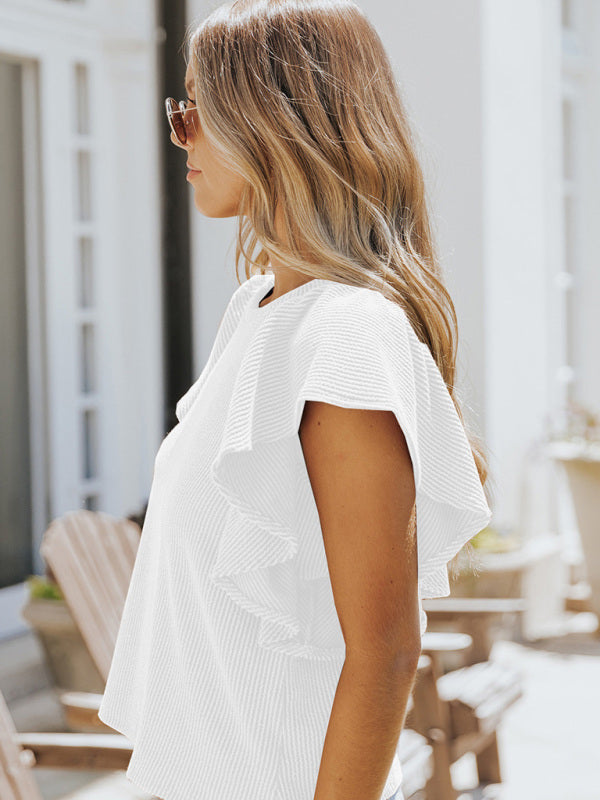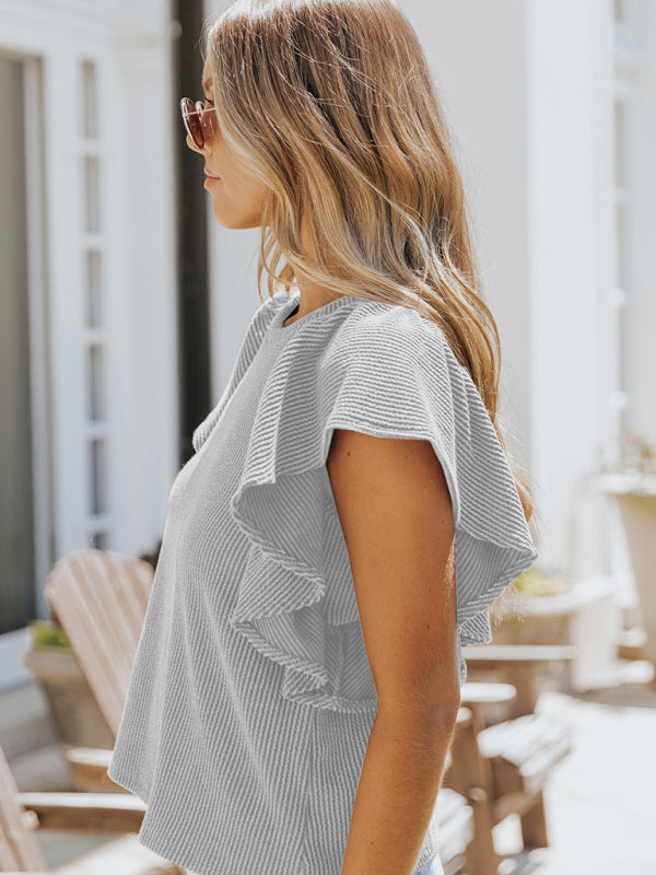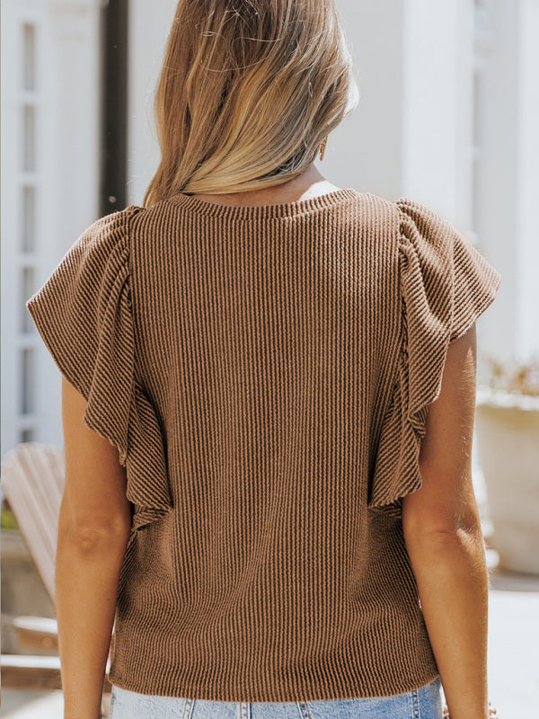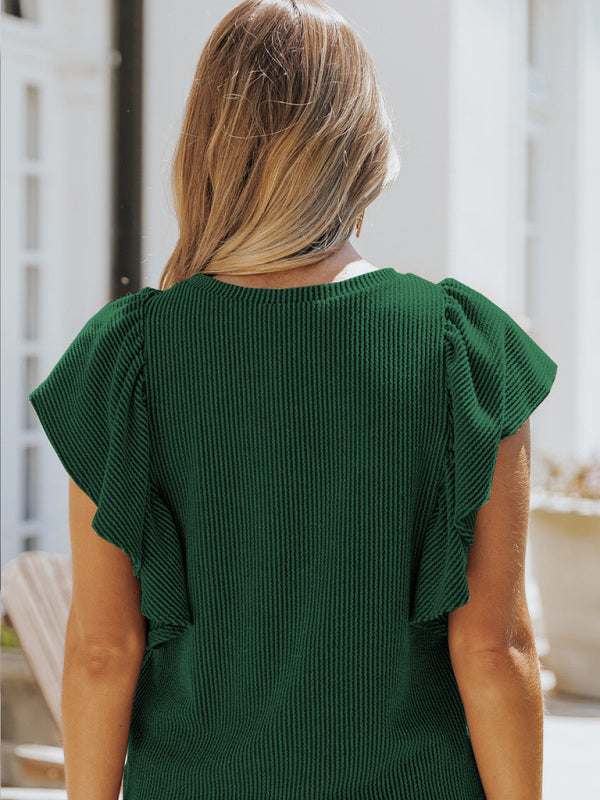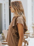 Women's casual fashion all-match ruffled sleeve top