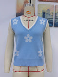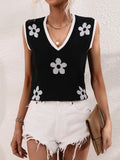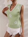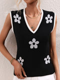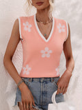 Women's Contrasting Color Jacquard V-Neck Sleeveless Knit Tank Top
