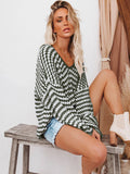 Women's fashion large V-neck loose thin sweater Pullover Sweater