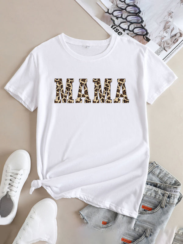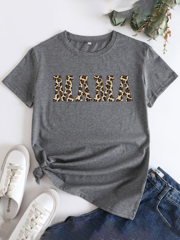 Women's MAMA Printed Round Neck Short Sleeve T-Shirt