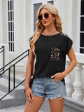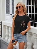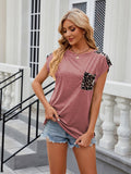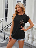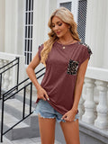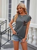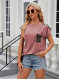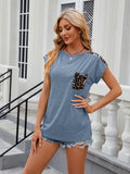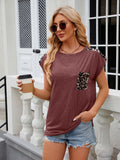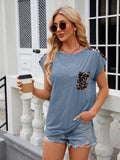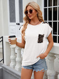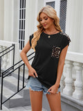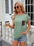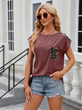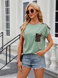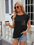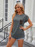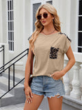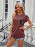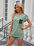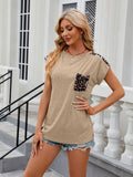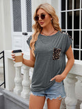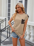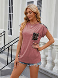 Women's round neck short-sleeved leopard print pocket casual T-shirt