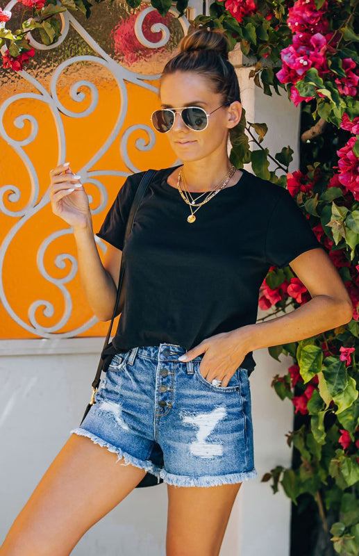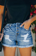 Women's Street Hipster Ripped Washed Versatile Fringed Denim Shorts