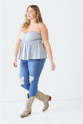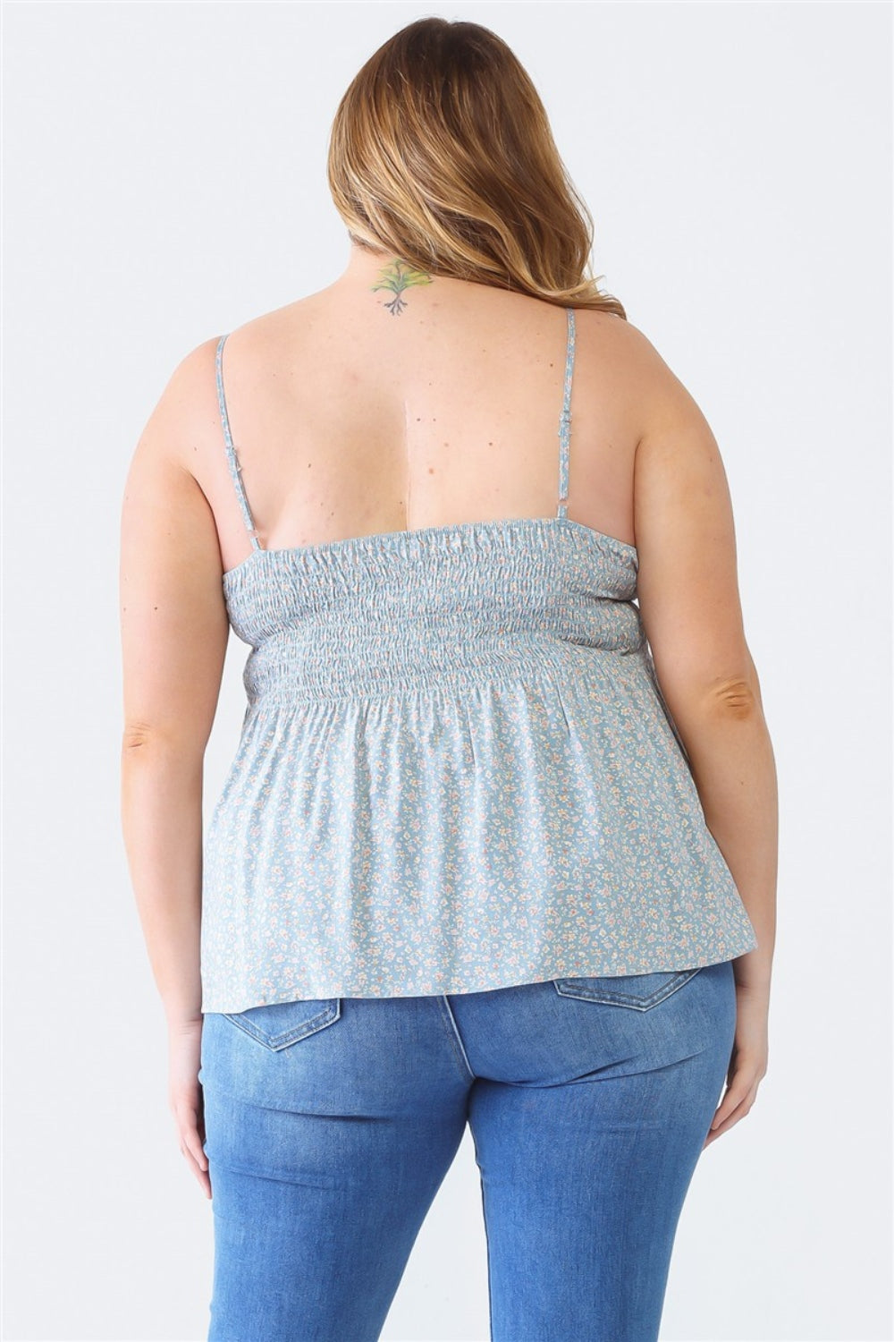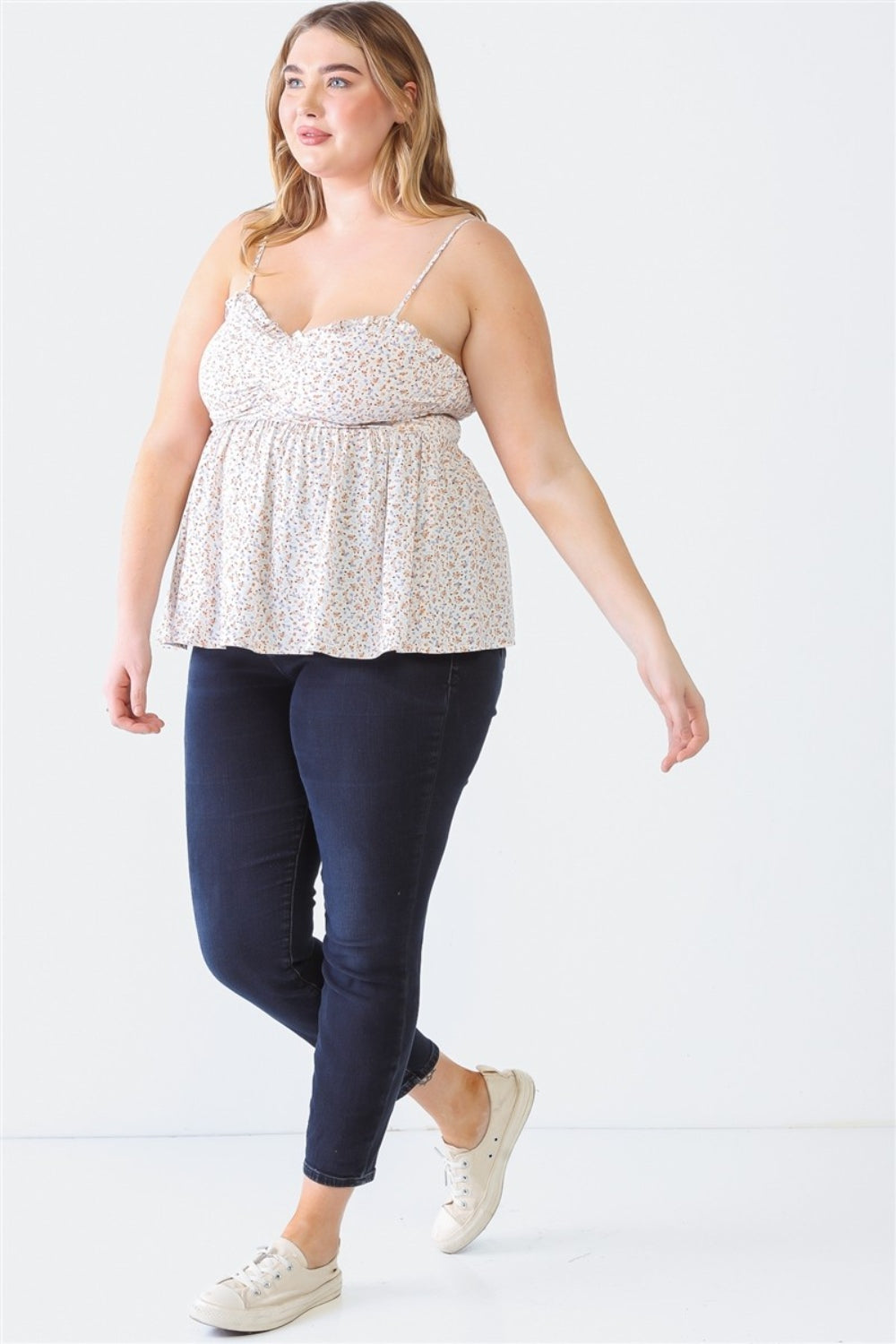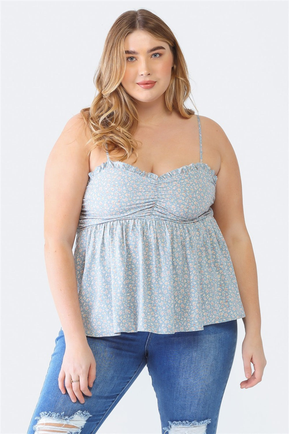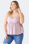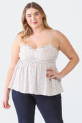 Zenobia Plus Size Frill Smocked Floral Sweetheart Neck Cami
